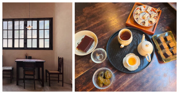 像是壽眉福鼎白茶,店員推薦可以搭配酸味基底的茶食,因此上桌的是桂花糕、山楂糕還有紫蘇梅。